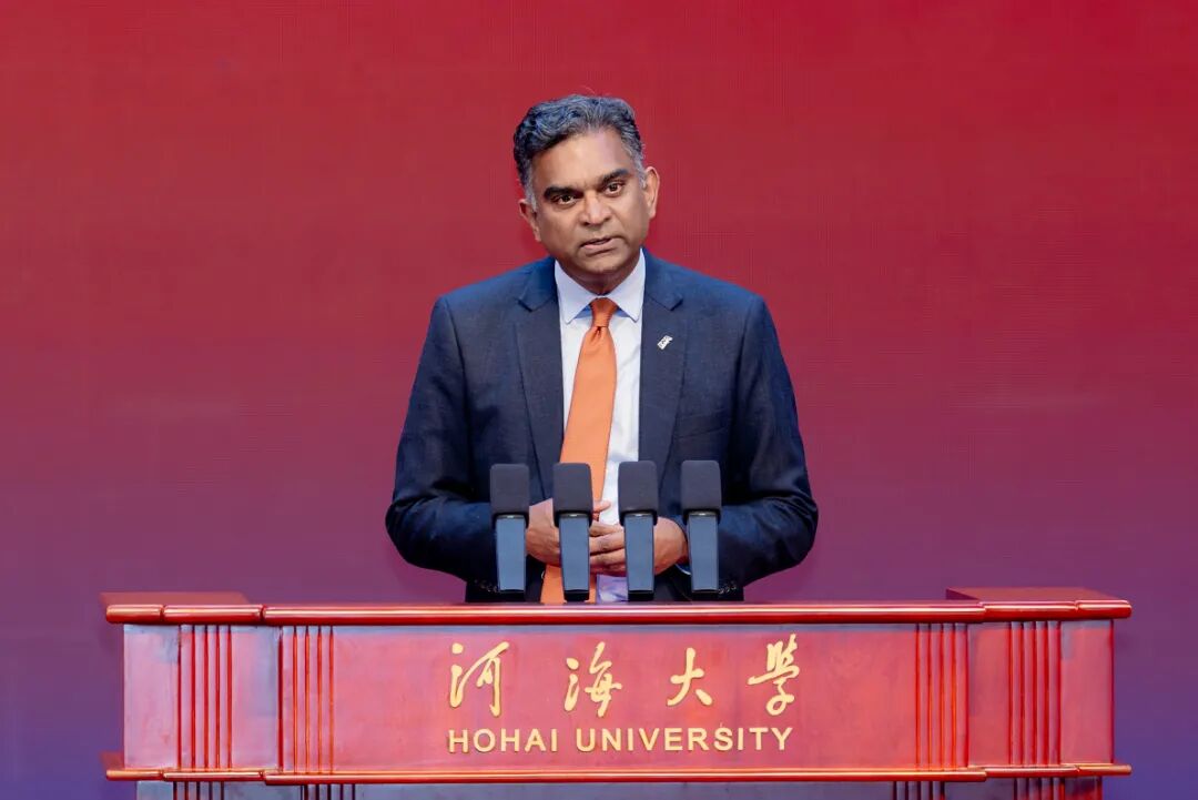 国际水协会总裁、执行主席Kalanithy Vairavamoorthy作为国际组织代表致辞。他表示,百十年来,河海大学不负其名,始终是知识溪流汇聚成智慧海洋的殿堂、求知探索与服务人类无缝衔接的家园,屹立于水科学与水利工程教育科研的前沿阵地,凭借卓越的学术追求与深植社会的责任感,成为享誉全球的水利领域权威机构与影响力广泛的学术中心。展望未来,期待与河海大学深化合作,共同推动知识进步、培育创新成果、培养新一代水利领军人才,祝愿河海未来百年能如过去般启迪人心、影响深远、改变世界。