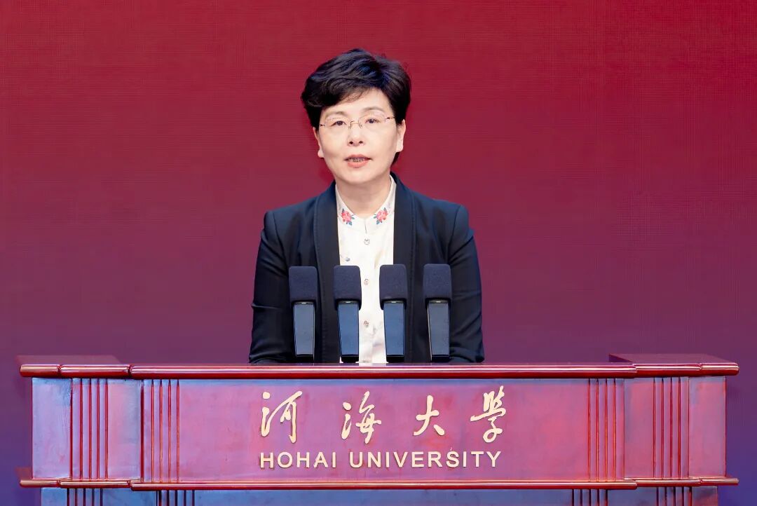 徐缨代表江苏省委省政府向河海大学全体师生员工和海内外校友表示诚挚问候。她指出,河海大学历史悠久、底蕴深厚,培养了一大批高层次领军人才,产出了一大批创新成果,创造了我国涉水领域若干个第一,为守护江河安澜、助力经济社会发展作出重要贡献。河海大学是江苏的“掌上明珠”,江苏是河海大学的坚实依靠。踏上新征程,希望河海大学把牢正确方向,广泛汇聚改革发展力量,在办好世界一流大学上勇立潮头;坚守教育初心,注重抓好红色基因和水利精神传承,在培育拔尖创新人才上勇担重任;彰显特色优势,推进科教融汇、产教融合,在推动水利科技创新上勇于争先;提升服务质效,多建睿智之言、多献务实之策,在促进经济社会发展上勇谱新篇。