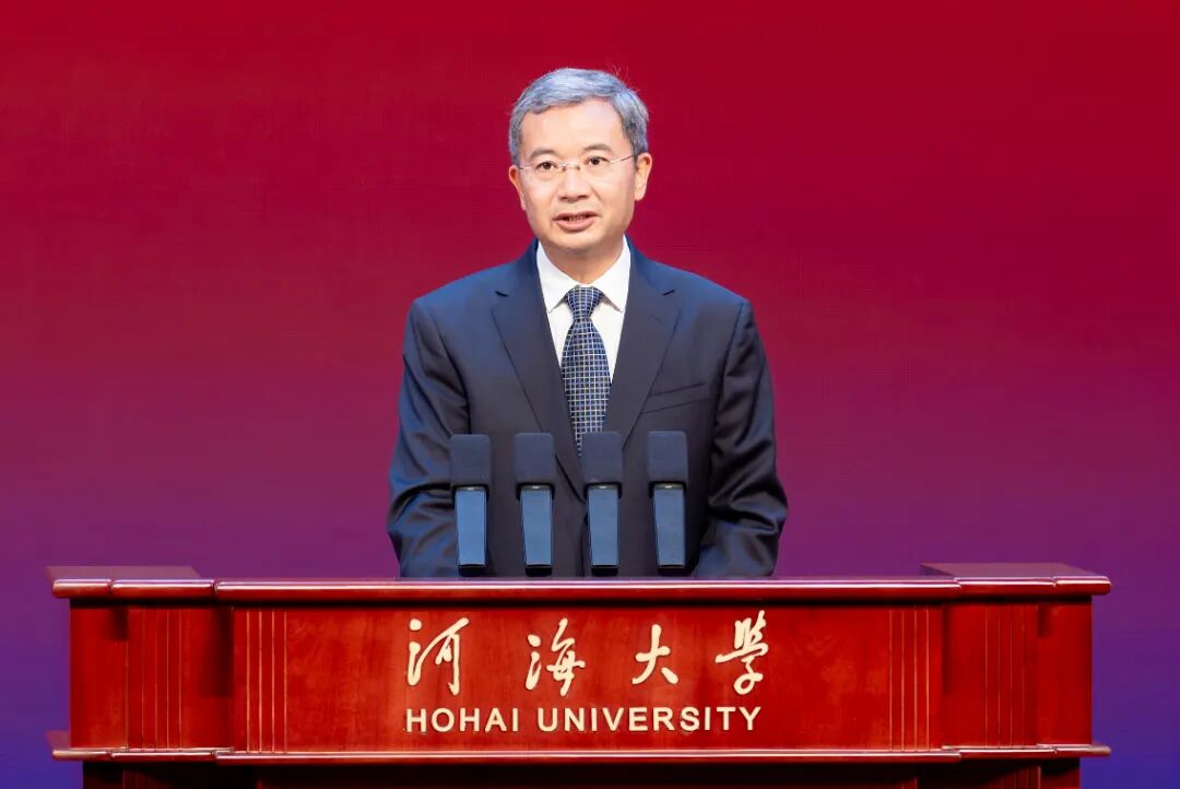 熊四皓代表教育部向河海大学全体师生员工和广大校友致以热烈祝贺和诚挚问候。他指出,河海大学是中国第一所培养水利人才的高等学府,先后为国家培养了30余万名优秀人才。学校主动服务国家“江河战略”“双碳”战略,以“水”为特色的一流学科建设取得积极成效,产生了一系列标志性成果。立足新起点,希望河海大学坚持社会主义办学方向,坚定不移落实立德树人根本任务,努力培养更多担当民族复兴大任的时代新人;坚持改革创新,全面提升人才自主培养质量,培养更多拔尖创新人才和国家战略急需人才;加强有组织科研,更好服务国家战略和区域经济社会发展,为保障国家水安全、参与全球水治理贡献更多“河海方案”。
