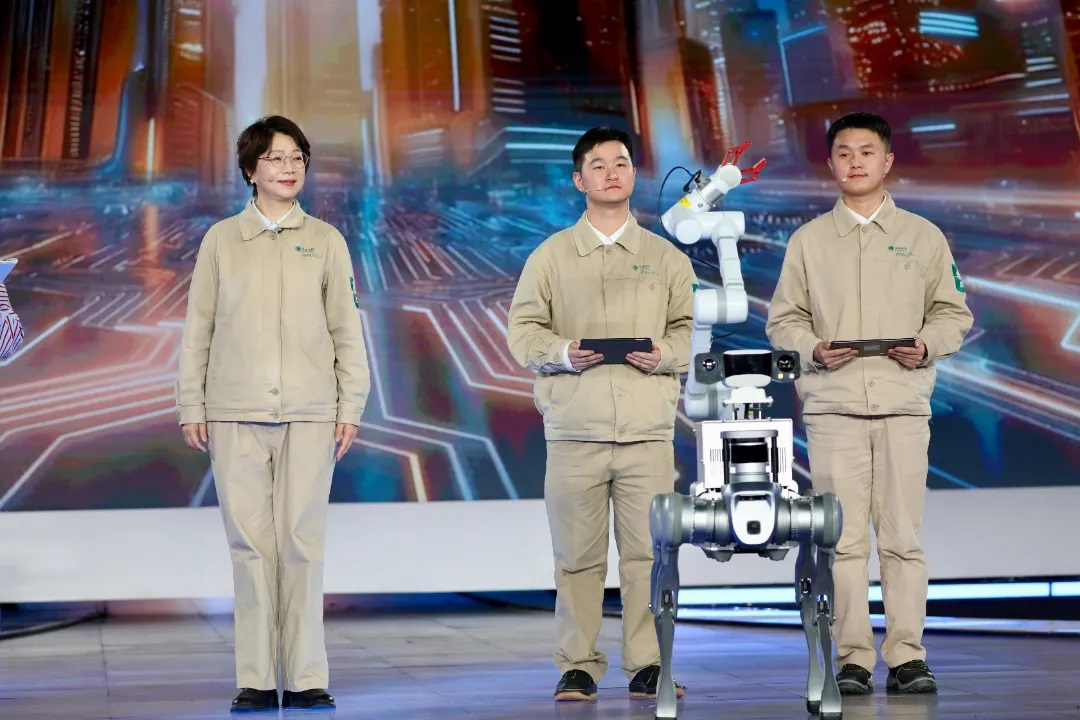 曾经,师父用3句追问为年轻的何光华指路;如今,她也成了领路人。当晚舞台上,徒弟赵嘉豪、齐金龙带着一位特殊“新同事”亮相——搭载激光雷达、红外成像等模块的四足机器狗挥动机械臂,向观众致意。