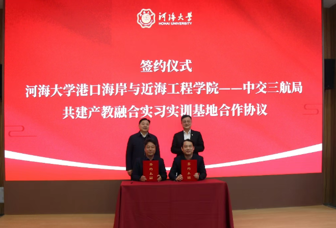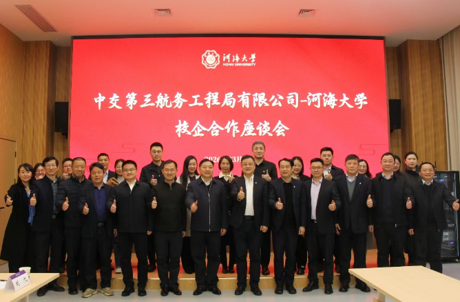 为深化校企合作、拓展毕业生就业渠道,3月24日下午,我校与中交第三航务工程局有限公司(简称“三航局”)校企合作座谈会在夏金仙学生服务中心101举行。中交三航局党委常委、副总经理吴向中,中交三航局人力资源部(党委组织部)总经理、部长尤华慧,中交三航局数字化管理部(数字化中心)总经理舒方法,中交三航局技术中心主任陶立双,中交三航局人力资源部(党委组织部)副总经理、副部长梁艳娇,中交三航局人力资源部副总经理,培训中心主任栗海粟及分公司领导参与座谈。河海大学党委副书记、副校长陆国宾,学生处处长王方,国内合作发展处处长、校友会办公室主任朱乔,港口海岸与近海工程学院党委书记张雪刚,国际教育学院院长陈红胜,终身教育学院副院长于伟,学生处副处长、就业指导中心主任王璐等参加座谈。