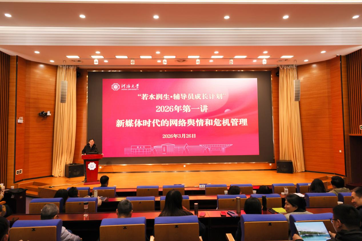 为深入落实新时代高校思想政治工作要求,全面提升辅导员队伍网络舆情应对与危机处理能力,切实筑牢校园安全稳定防线。3月26日上午,我校举办“若水润生•辅导员成长计划”2026年第一讲,特邀南京大学紫金传媒智库研究员、副秘书长燕志华博士作“新媒体时代的网络舆情和危机管理”专题培训。培训由学生工作处处长王方主持,各学院党委副书记、宣传员、班导师、辅导员共计100余人参加,共同学习新媒体环境下的学生工作风险防控与舆论引导策略。