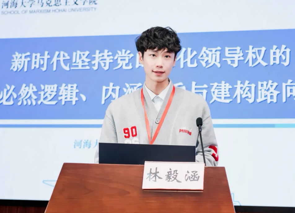 三年前,林毅涵抱着对“红帽子大学”的向往,来到了河海大学,选择中共党史党建学为研究方向,开启了自己的研学之旅。在硕士生涯中,他始终以张闻天、沈泽民等无产阶级革命先驱校友为榜样,用实际行动展现了新时代青年的使命感与责任感。