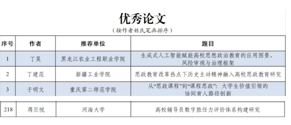 材料科学与工程学院团委书记、2022 级和 2023 级本科生辅导员蒋旦悦老师的学术论文《高校辅导员数字胜任力评价体系构建研究》荣获优秀论文。